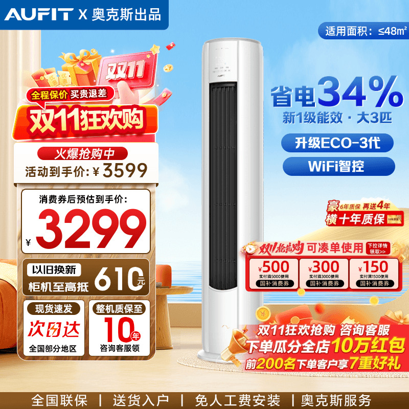 AUFIT空调套装奥克斯出品大3匹立式柜机一级能效家用旗舰店2p首88