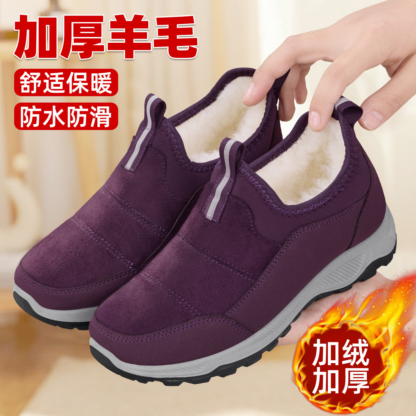 防滑老人棉鞋北京老布鞋女冬季加绒保暖妈妈鞋软底防水老年奶奶鞋