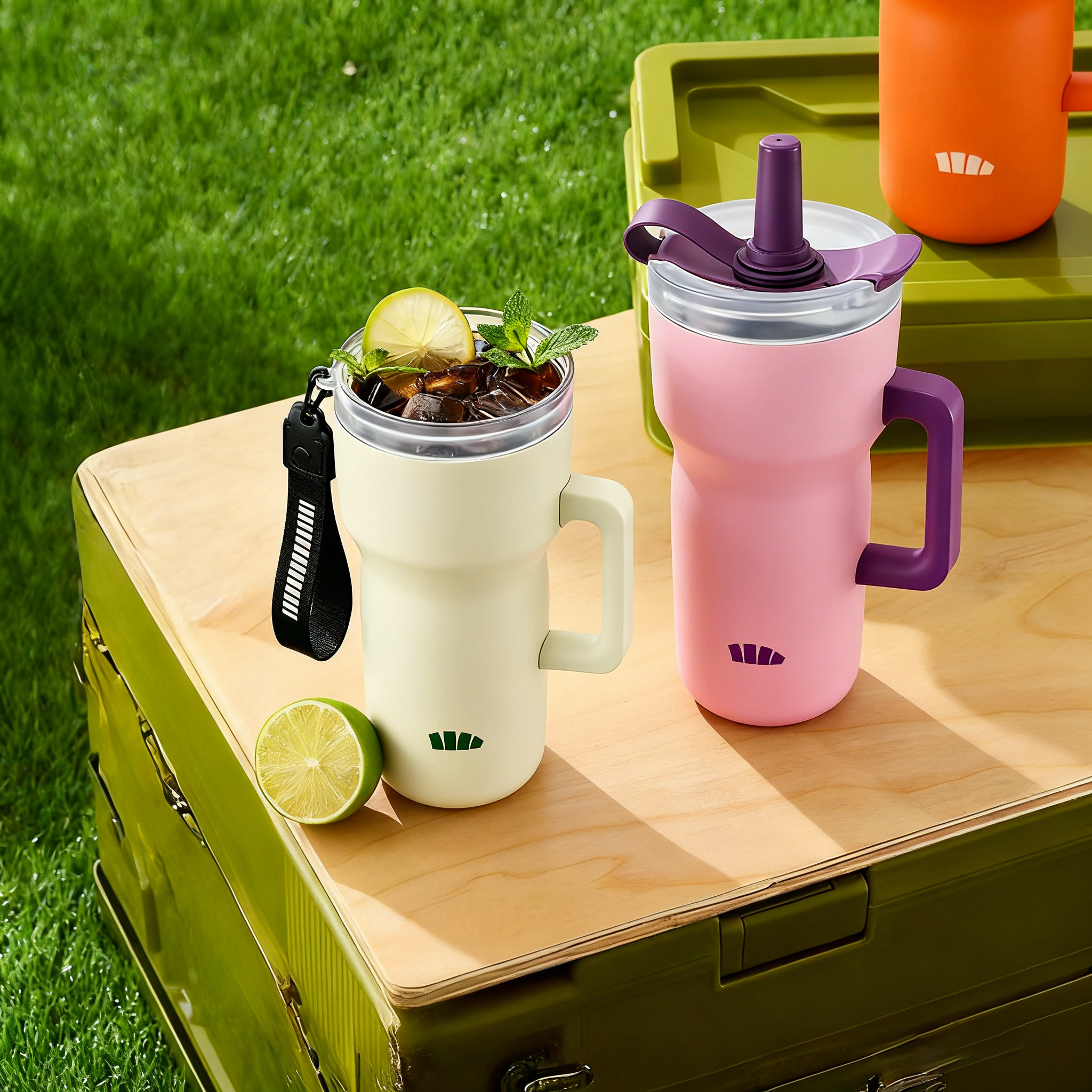 2025新款大容量便携车载保温壶 户外旅行一杯双盖不锈钢保温水壶