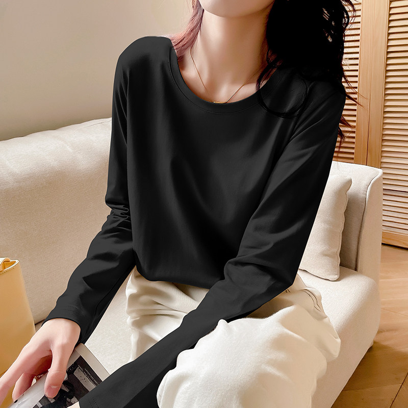 纯棉打底衫女长袖内搭高弹力百搭ins修身显瘦外穿t恤女士白色上衣