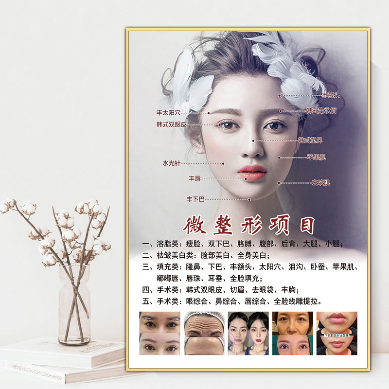 微整海报挂画除皱宣传画隆鼻广告美容院韩式双眼皮抗衰线雕装饰画
