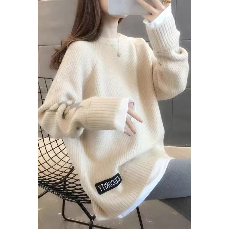 - 衬衣领套头毛衣女假两件套针织衫女