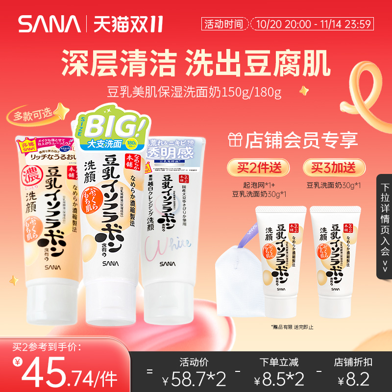 日本SANA莎娜豆乳洗面奶女补水保湿干皮油皮清洁面乳可卸妆正品