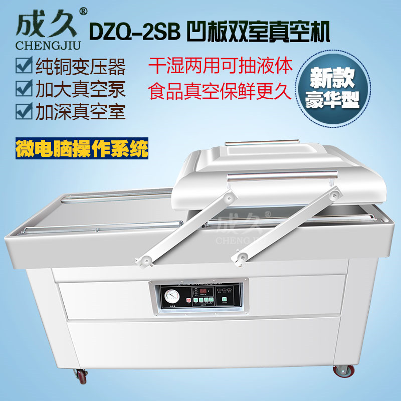 成久豪华型DZQ400 500 600-2SB凹板双室真空封口机 干湿两用海鲜液体食品抽真空机 全自动双室真空包装机商用