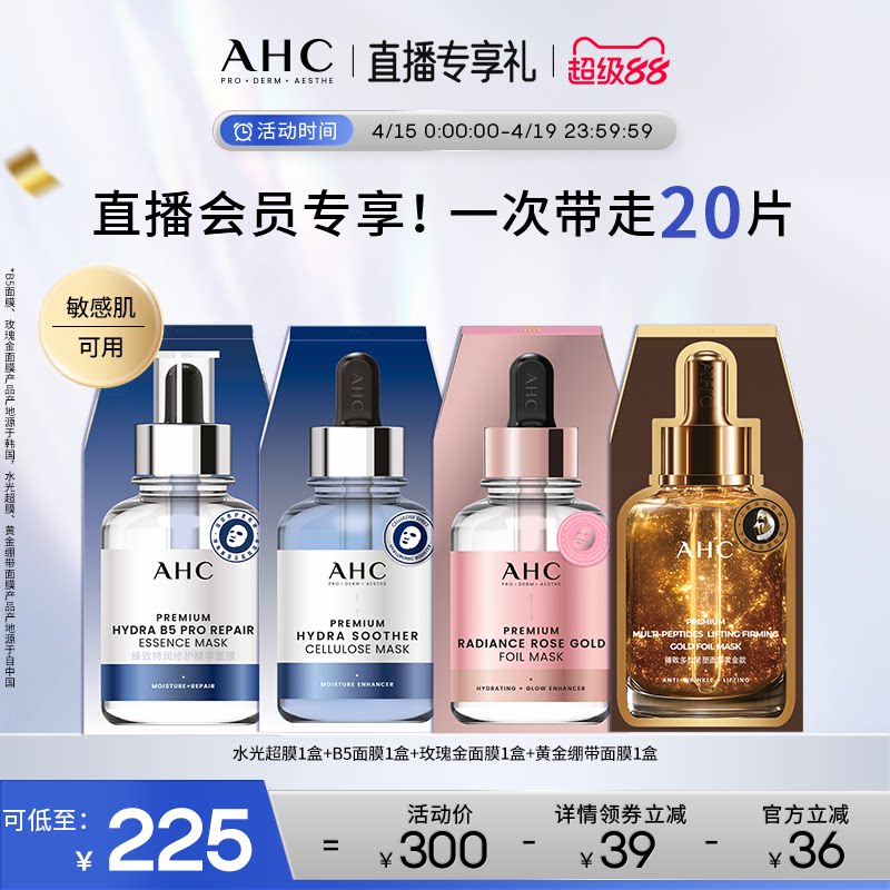 【直播会员专享】AHC官方水光超膜B5面膜玫瑰金面膜黄金绷带面膜