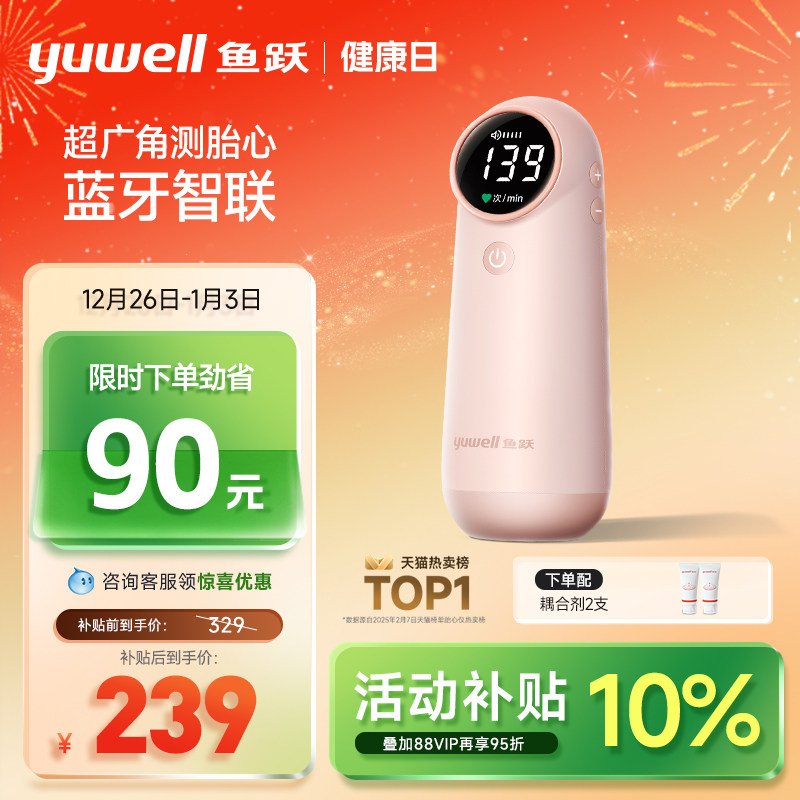 鱼跃胎心仪监测听胎心监护仪孕妇家用超声多普勒胎动检测无忧辐射