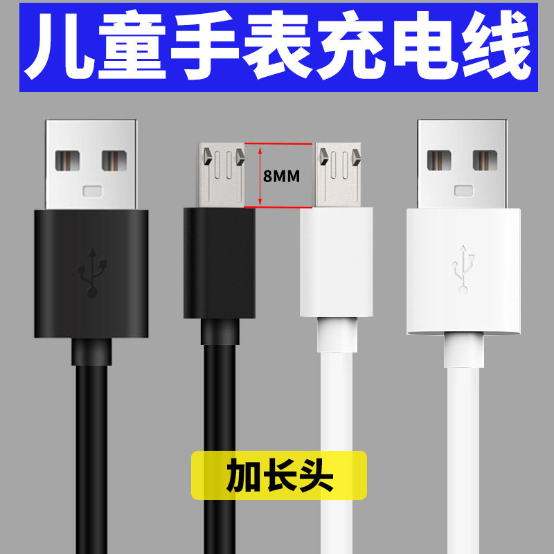 电话手表充电器线学生安卓8mm加长口插头智能手环MicroUSB数据线