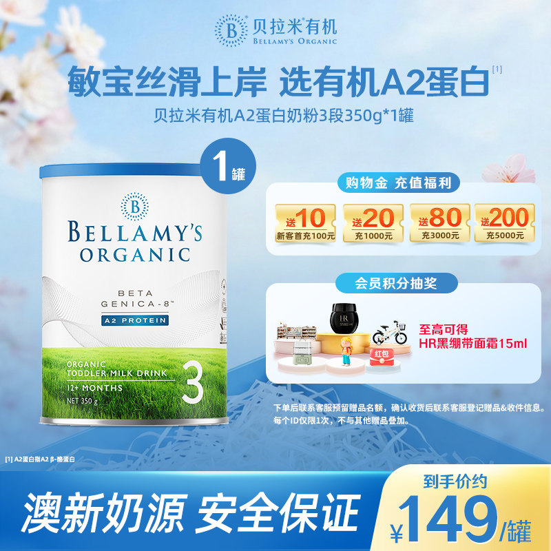 澳洲官方进口贝拉米白金版有机A2蛋白婴幼儿奶粉3段DHA800g/罐