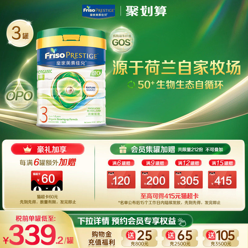【官方旗舰】港版有机皇家美素佳儿®DHA配方婴幼儿奶粉3段800g*3