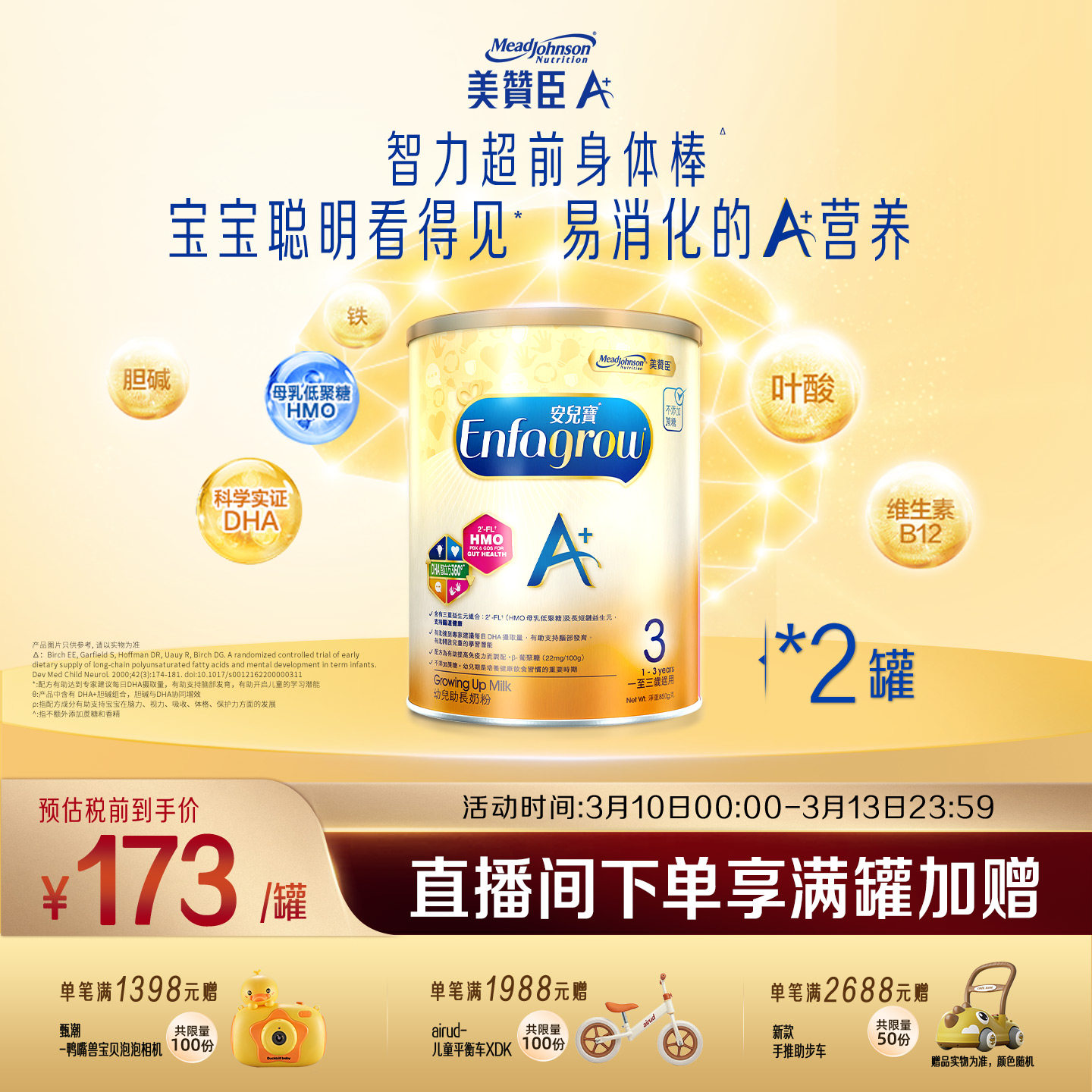 【新客专享】美赞臣进口安儿宝A+婴幼儿奶粉3段(1-3岁)850g*2罐