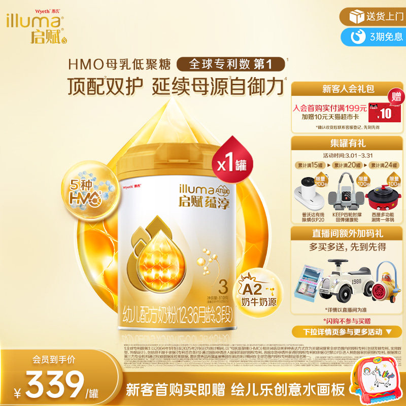 【高端旗舰】惠氏启赋蕴淳婴幼儿奶粉3段1-3岁+HMO+A2奶源