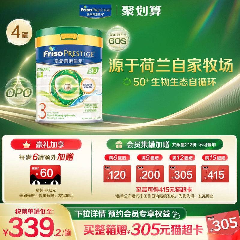 【官方旗舰】港版有机皇家美素佳儿®DHA配方婴幼儿奶粉3段800g*4