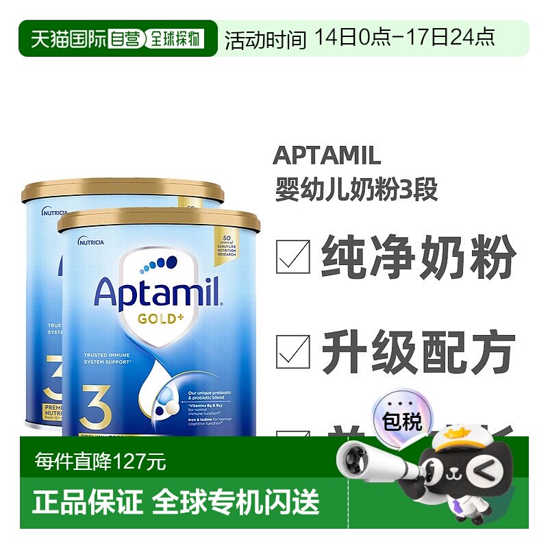 澳大利亚直邮Aptamil爱他美金装升级新版婴幼儿奶粉3段900g*2罐