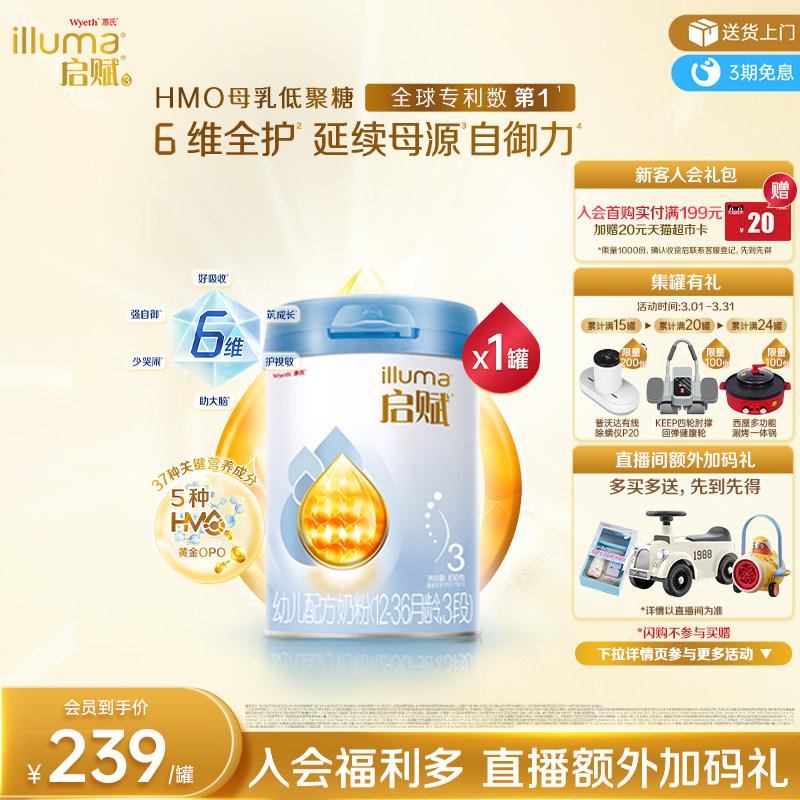 【官方正品】惠氏启赋蕴淳3段HMO进口A2奶源婴幼儿配方牛奶粉810g