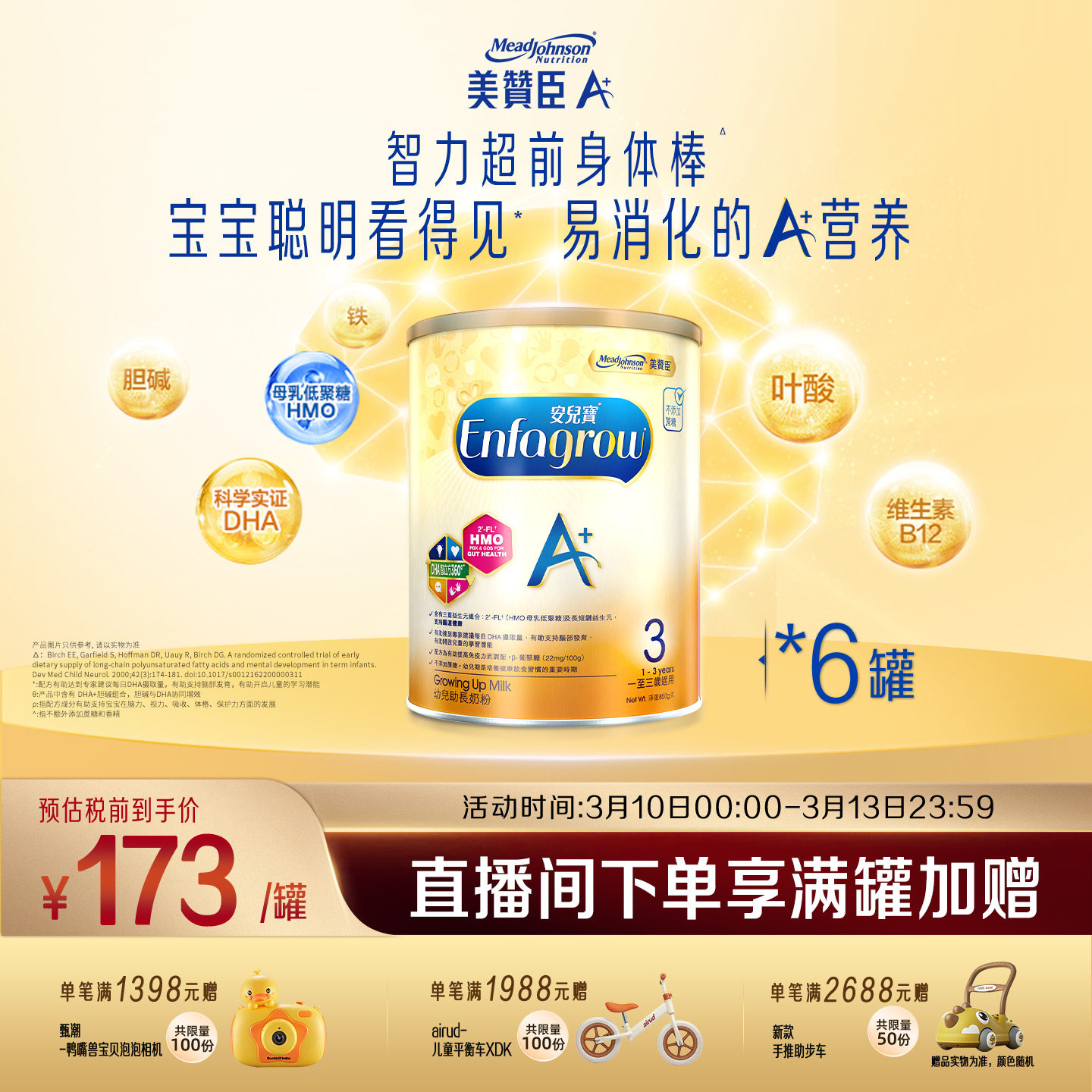 美赞臣原装进口安儿宝A+婴幼儿奶粉3段(1-3岁)850g*6罐