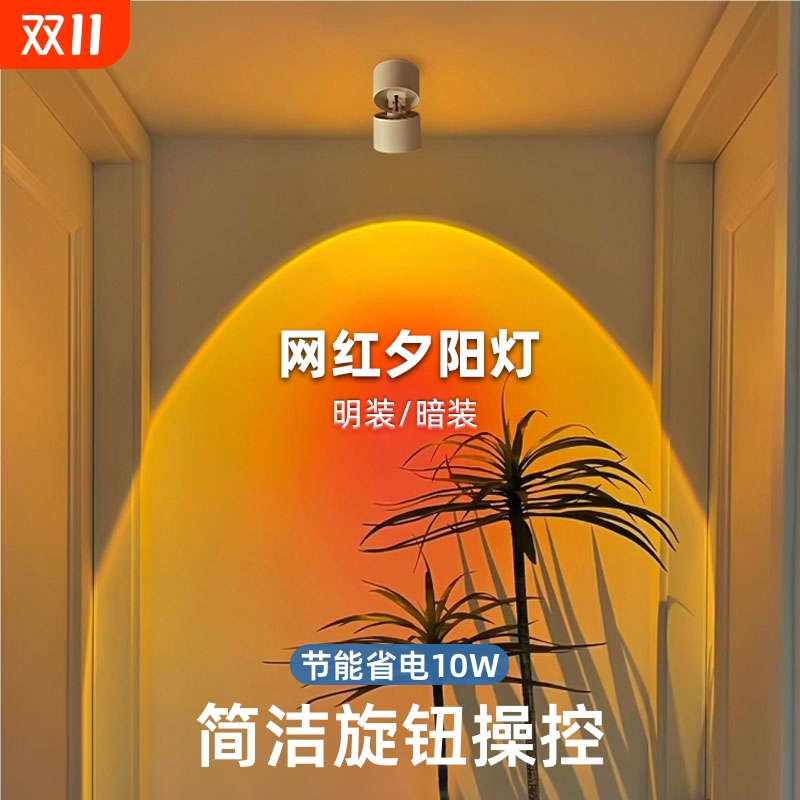 明装夕阳红洗墙走廊玄关照画过道灯走廊商铺背景嵌入式日不落射灯