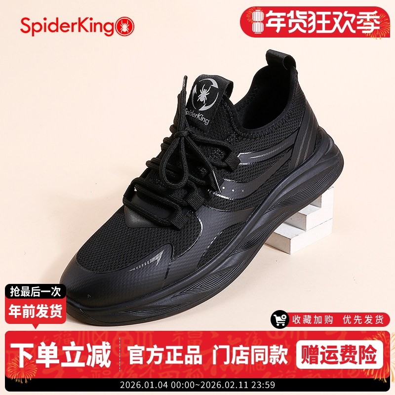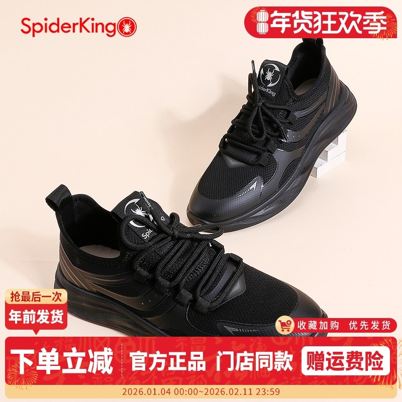 蜘蛛王男鞋2025春季黑色网面透气运动休闲鞋男士户外软底跑步鞋