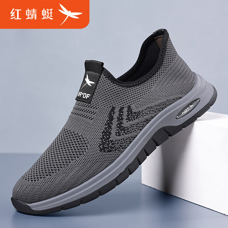 红蜻蜓男鞋2025夏季新款飞织网面透气运动休闲鞋男镂空软底网布鞋