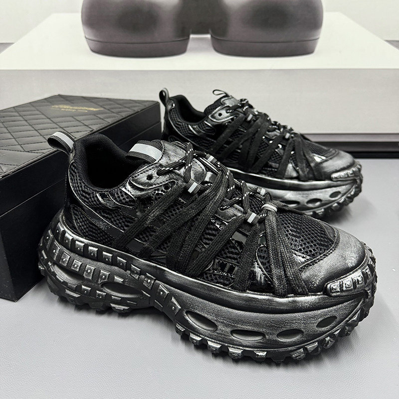 大码男鞋黑色鞋子老爹鞋男秋季2025新款高级感网面透气运动休闲鞋
