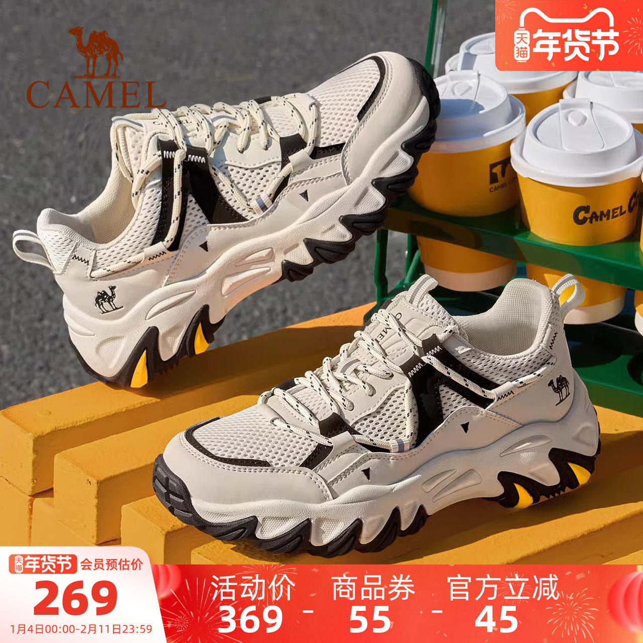 骆驼男鞋2025新款秋冬老爹鞋潮流休闲鞋子透气网面户外登山运动鞋