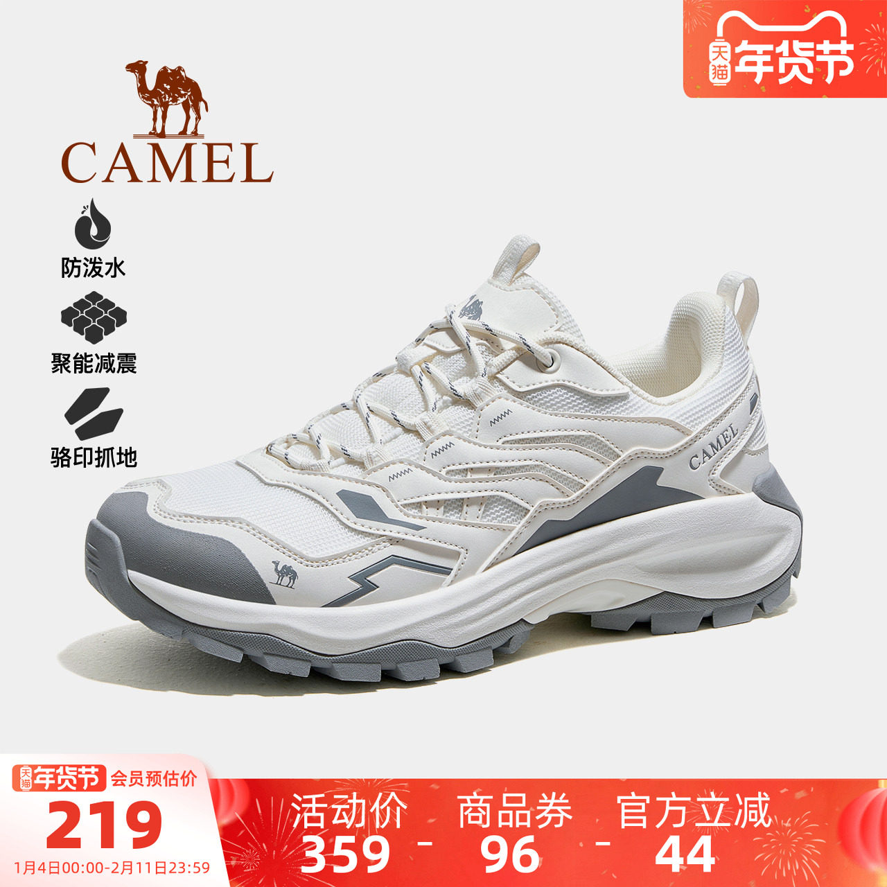 骆驼男鞋青岩2025秋冬新款户外网面休闲运动白鞋透气女徒步登山鞋