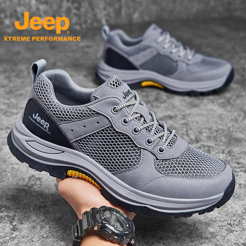 Jeep吉普男鞋夏季新款网面透气运动休闲鞋防滑户外登山中年爸爸鞋