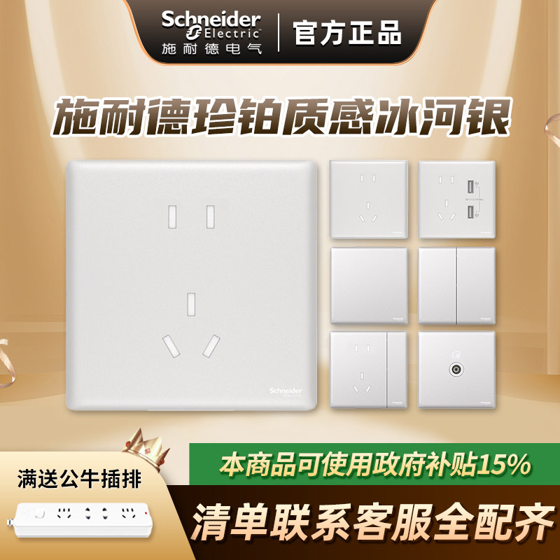 【新品】施耐德官方旗舰店开关插座面板家用五孔电源超薄PC致铂