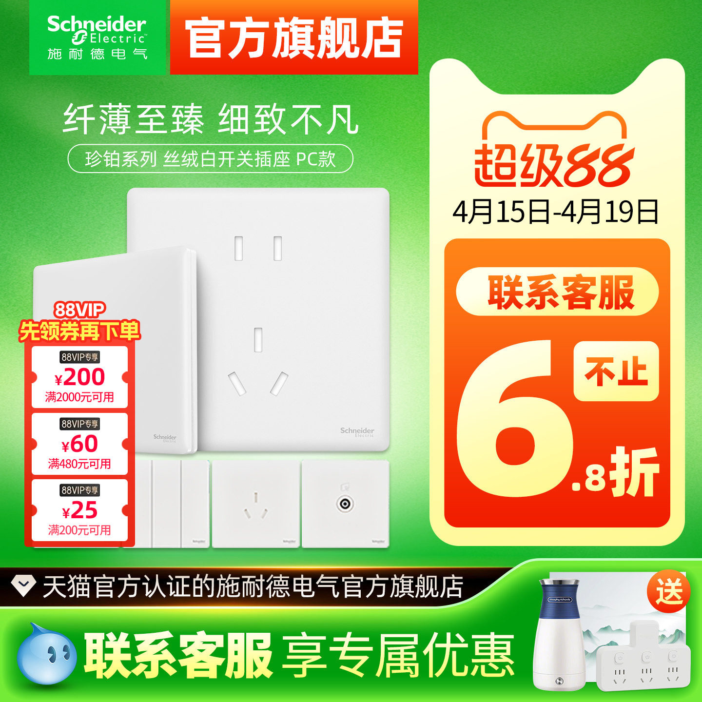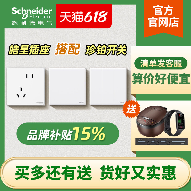施耐德开关插座开关面板五孔皓呈系列珍铂皓隽插座面板官方旗舰店