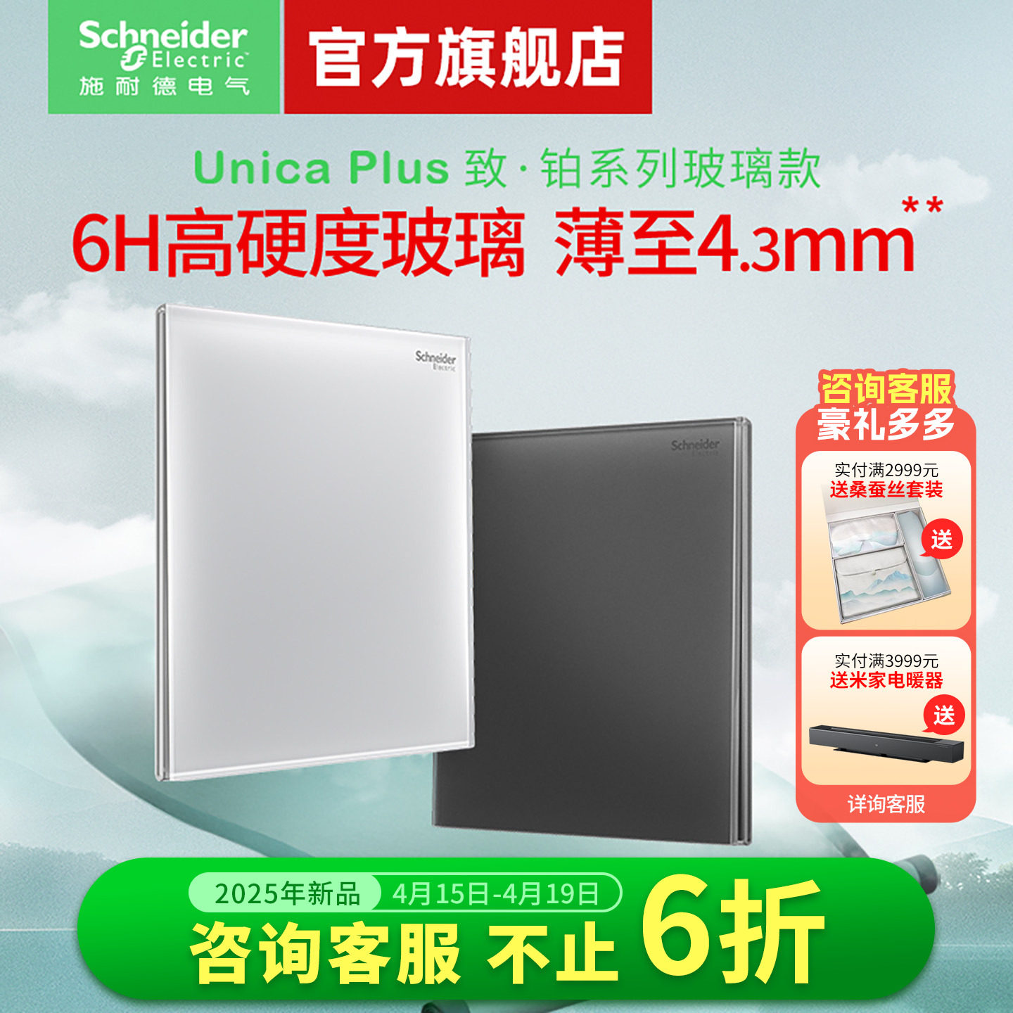 【新品】施耐德旗舰店开关插座五孔家用墙开超薄钢化玻璃面板致铂