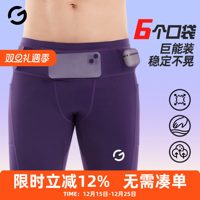 马拉松专业跑步压缩裤长男五分裤可放手机女速干短裤紧身骑行三分