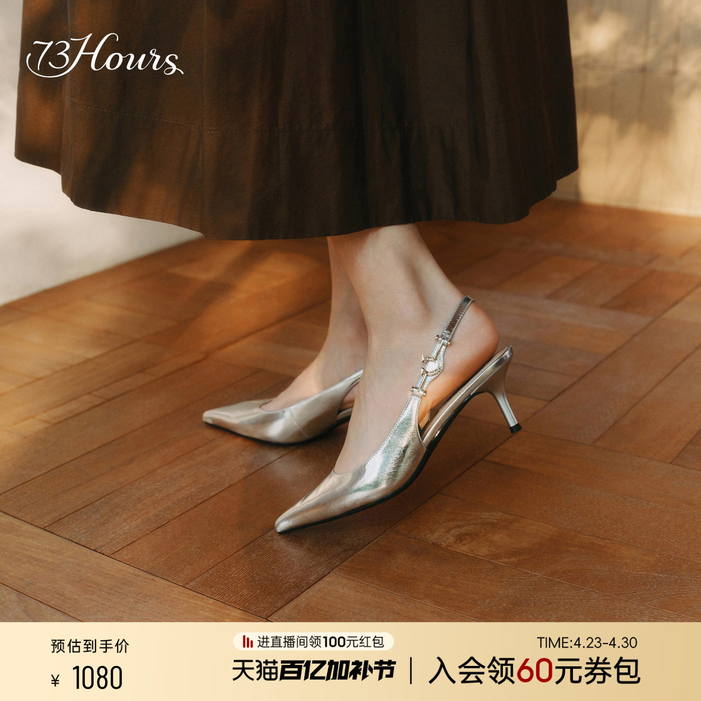 73hours女鞋街角之间2026春季新款高跟尖头法式银色凉鞋高跟鞋女