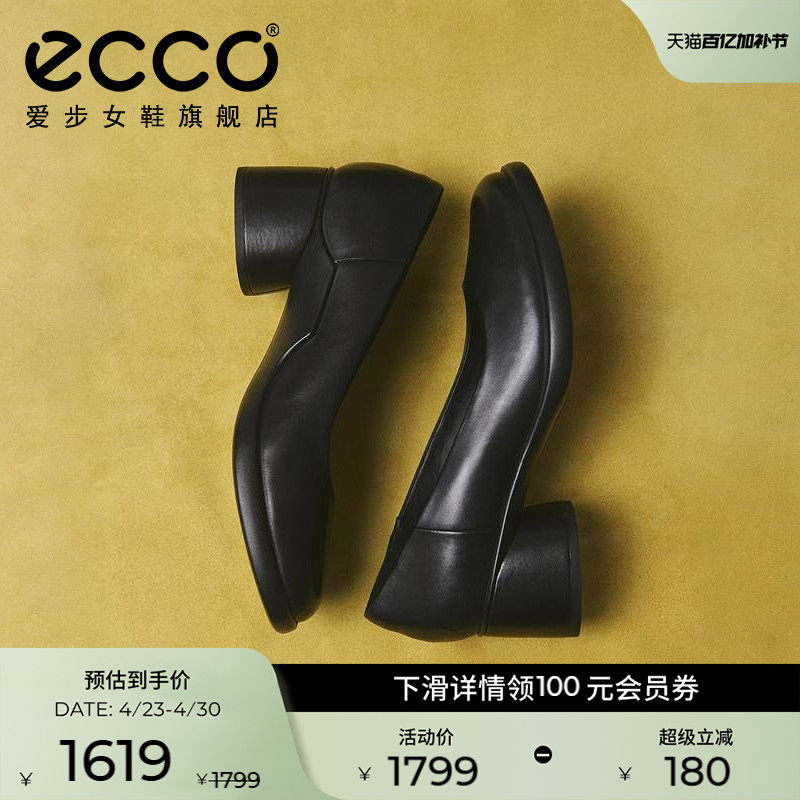ECCO爱步单鞋女 春季新款真皮粗跟高跟百搭小皮鞋 雕塑奢华222493