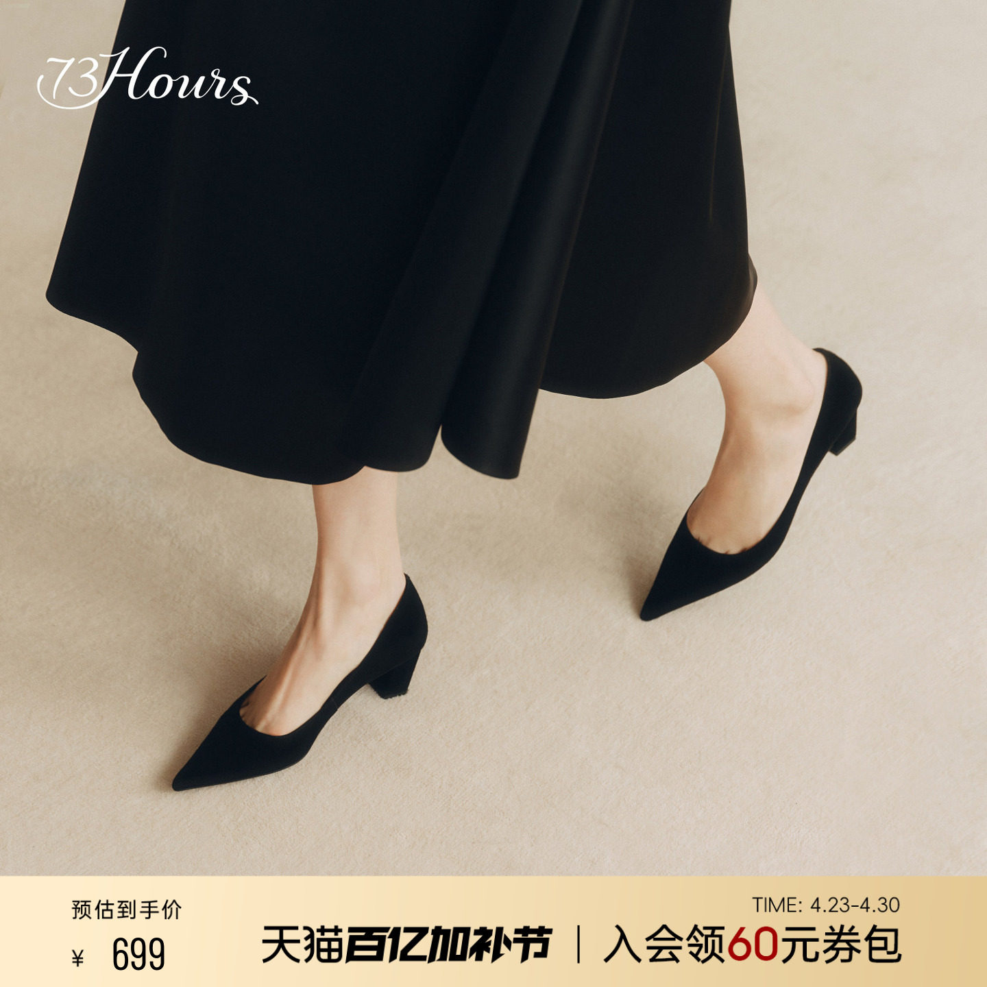 73hours女鞋Brittany2026春季新款尖头单鞋黑色不累脚粗跟高跟鞋