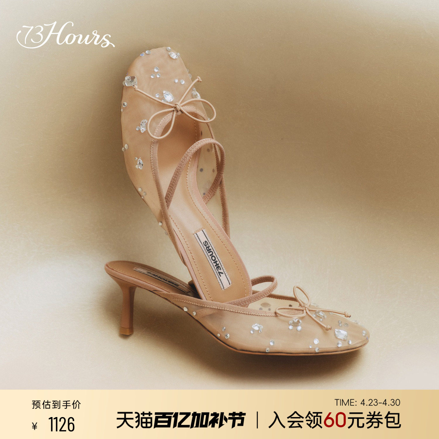 73hours女鞋一捧浪漫2026春季新款仙气网纱高跟鞋婚鞋女后空凉鞋