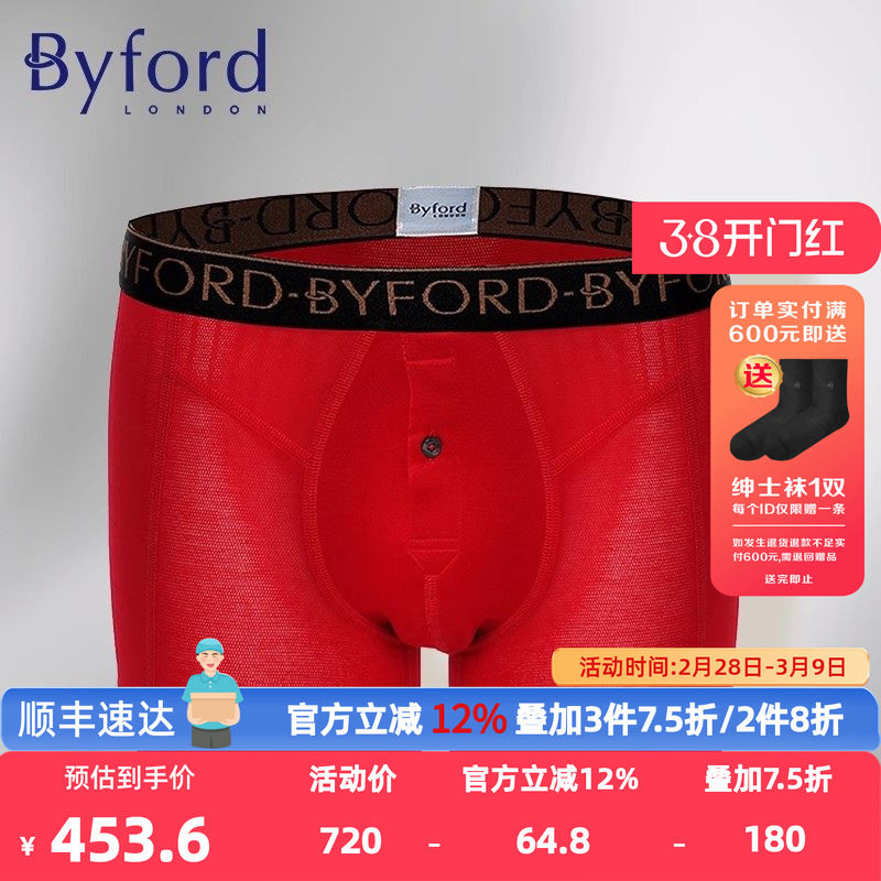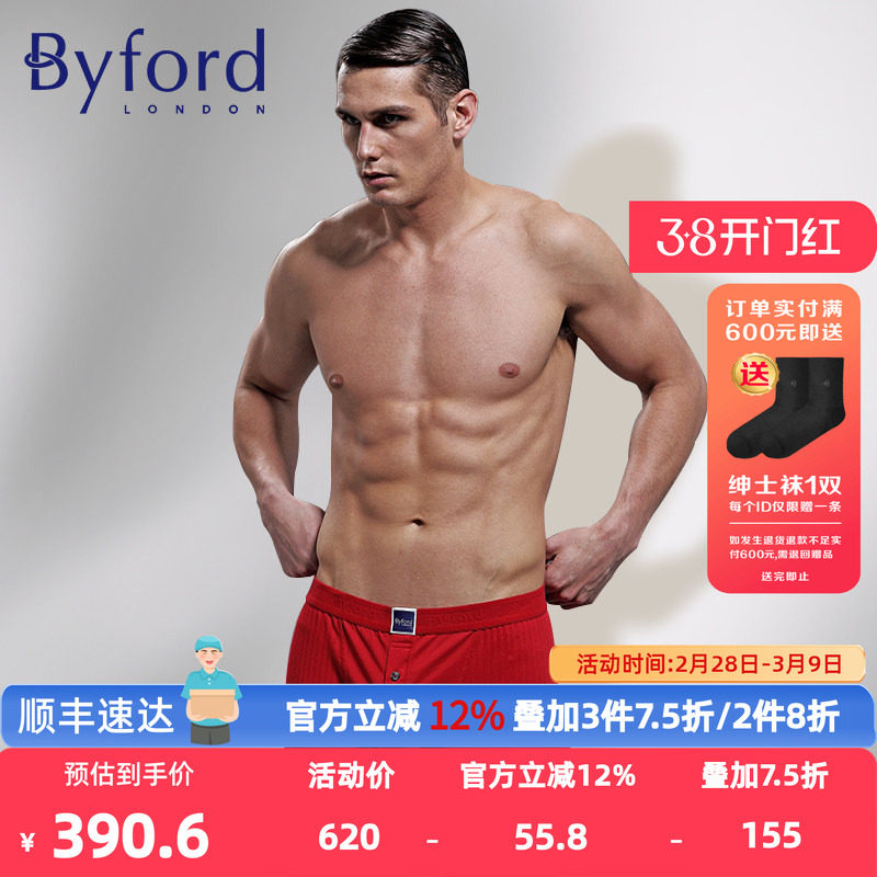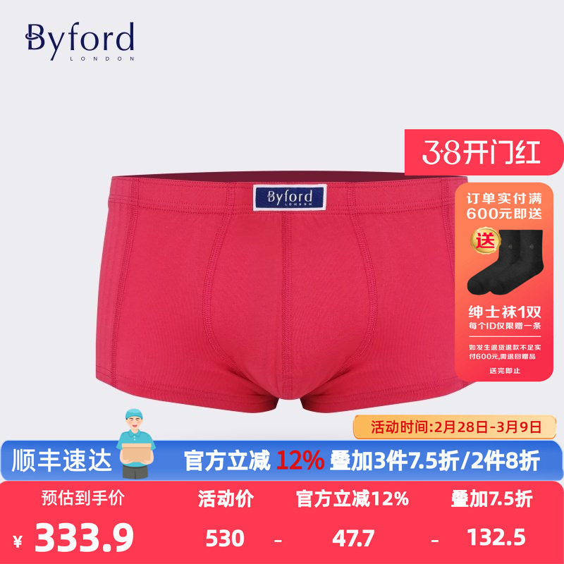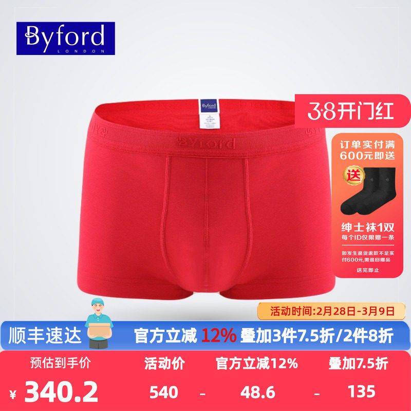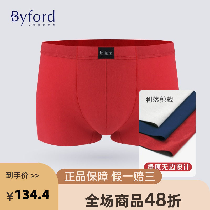 Byford/百富男士EUC棉平角裤香港产专柜同款本命年红色抗菌MW718