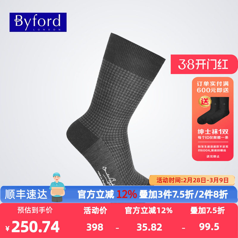 Byford/百富男士专柜款英国产羊毛中筒袜商务男袜 BB9341