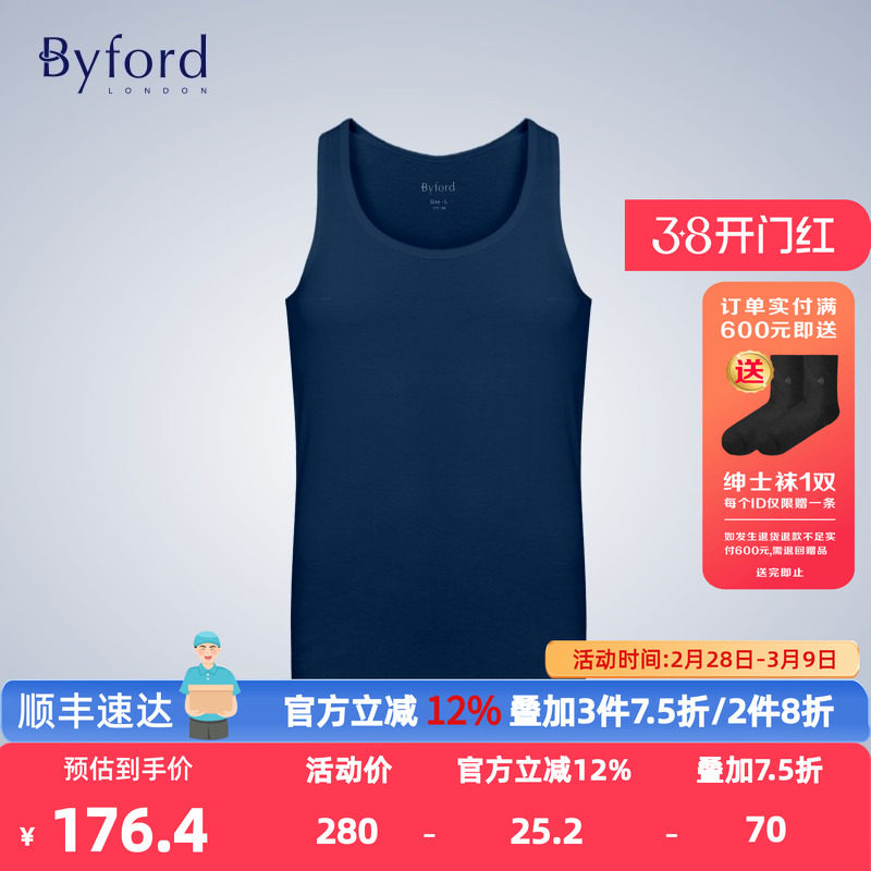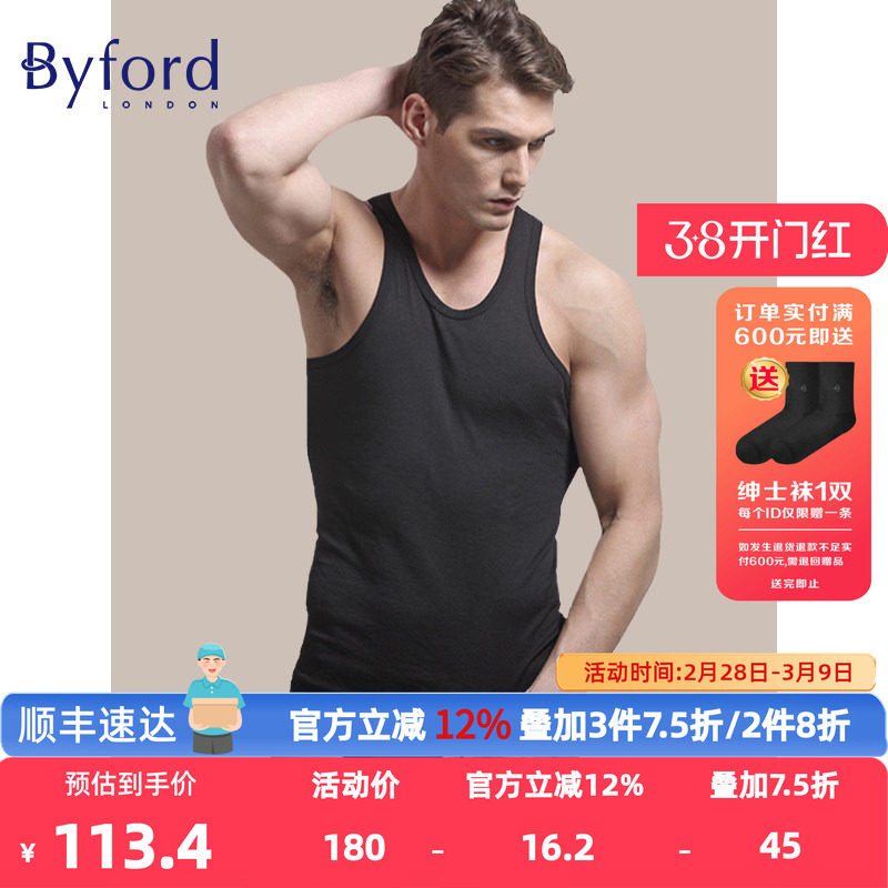 Byford百富男士专柜款比马棉舒适打底衫运动背心汗衫-MW33024