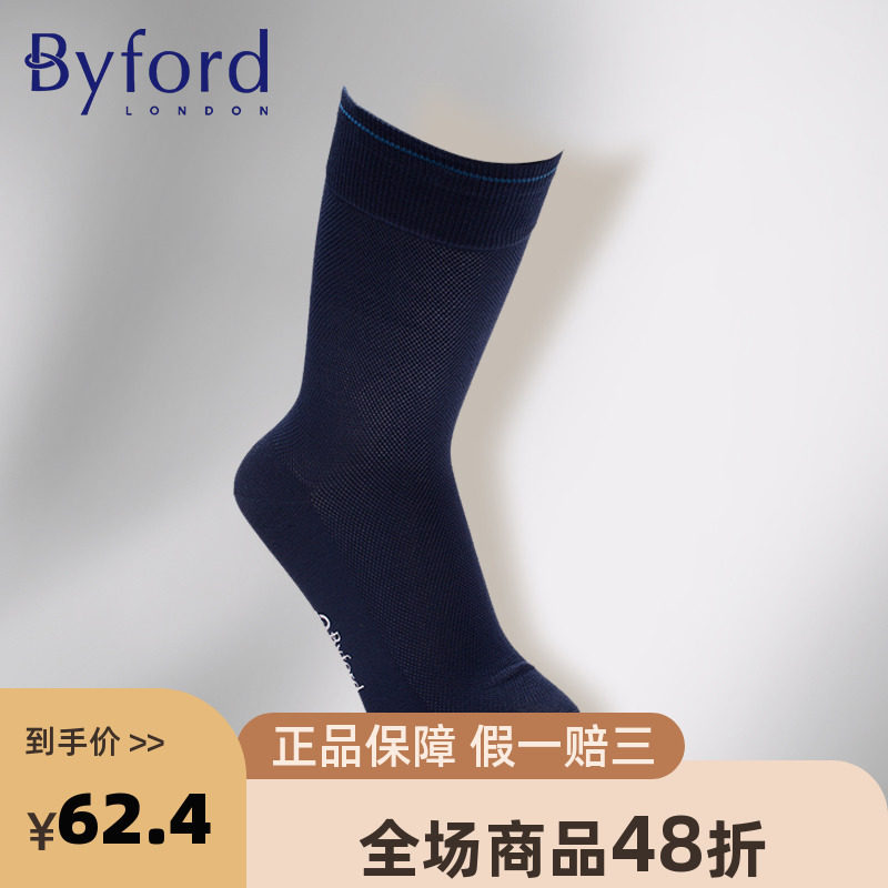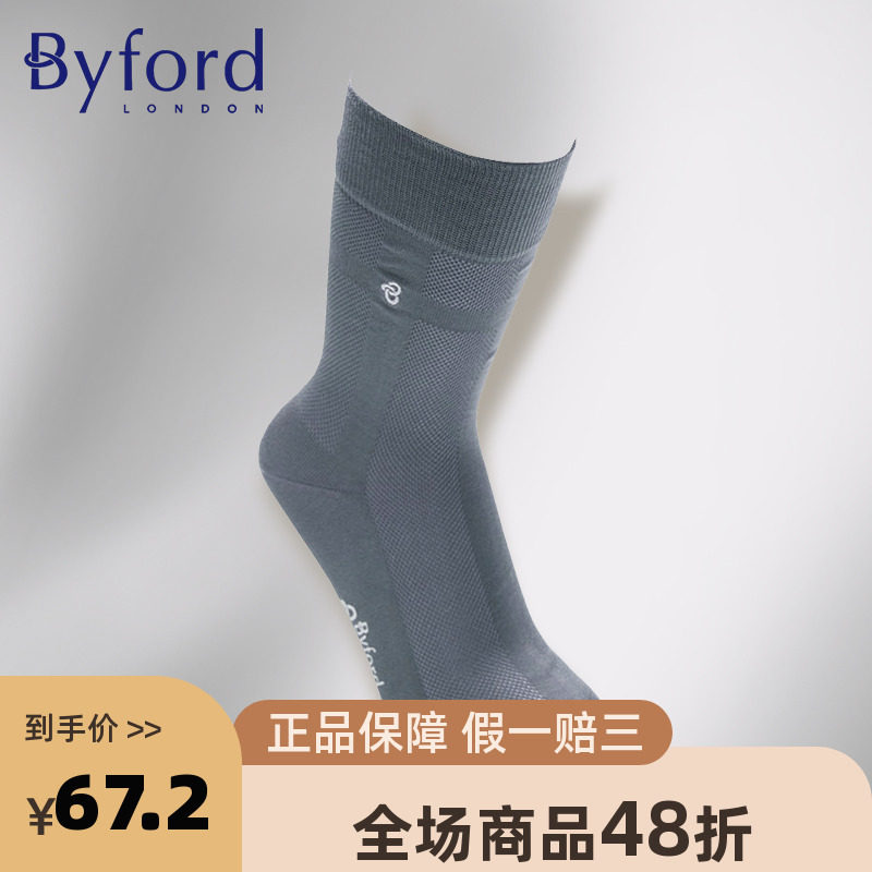 Byford/百富百年品牌高支纱男士轻便绅士棉针织中筒袜商务 9007C