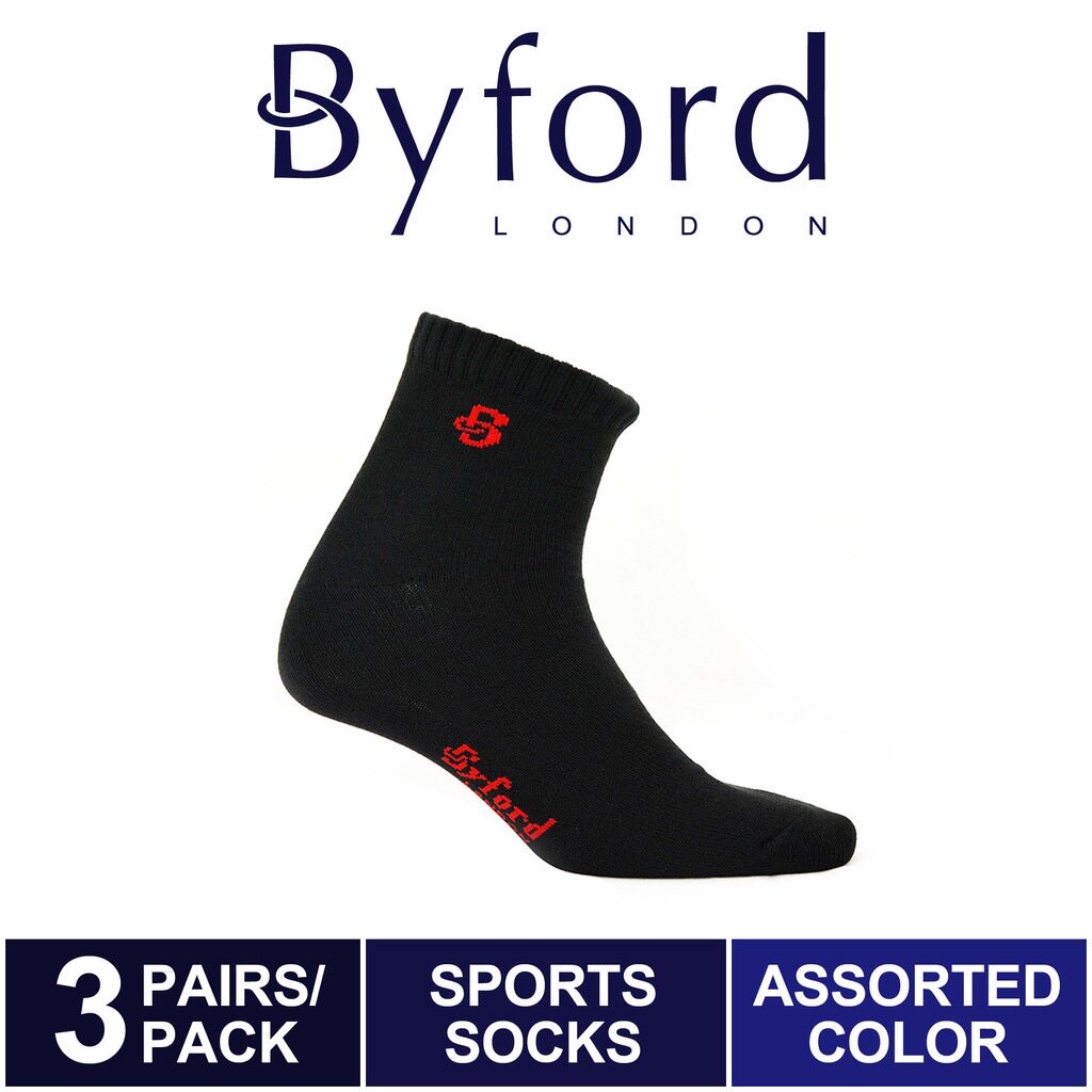 3双优惠装正品Byford百富黑色全棉防臭抗菌吸汗低帮透气运动男袜