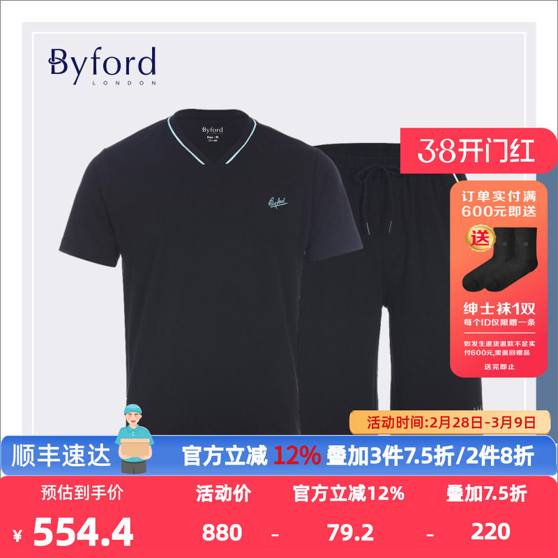 Byford百富专柜款棉弹V领短袖男装棉弹短裤套装MH21029+MH21030