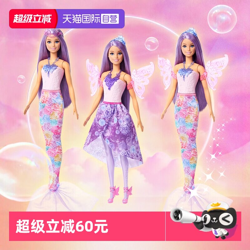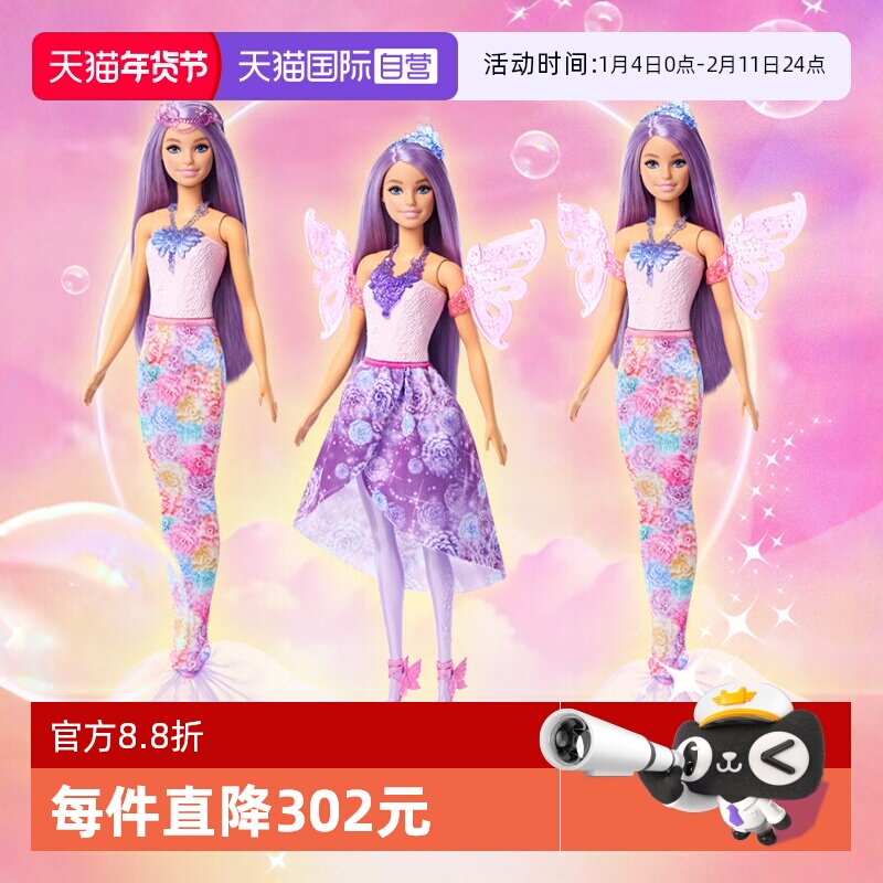 【自营】芭比娃娃之梦幻换装美人鱼系列童话世界礼盒套装女孩玩具