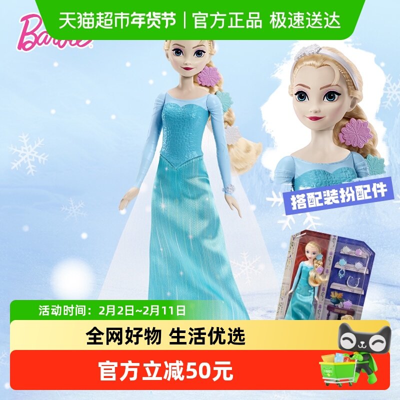 芭比娃娃迪士尼冰雪奇缘之惊喜冬季盛会艾莎玩具套装女孩礼物送礼