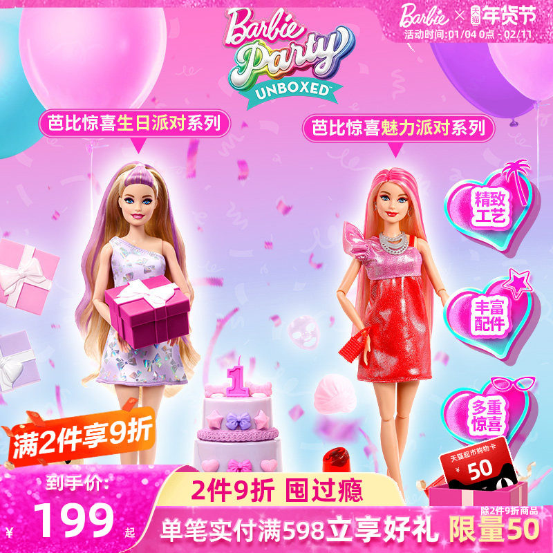 芭比娃娃Barbie惊喜生日魅力派对套装女孩玩具过家家生日礼物送礼
