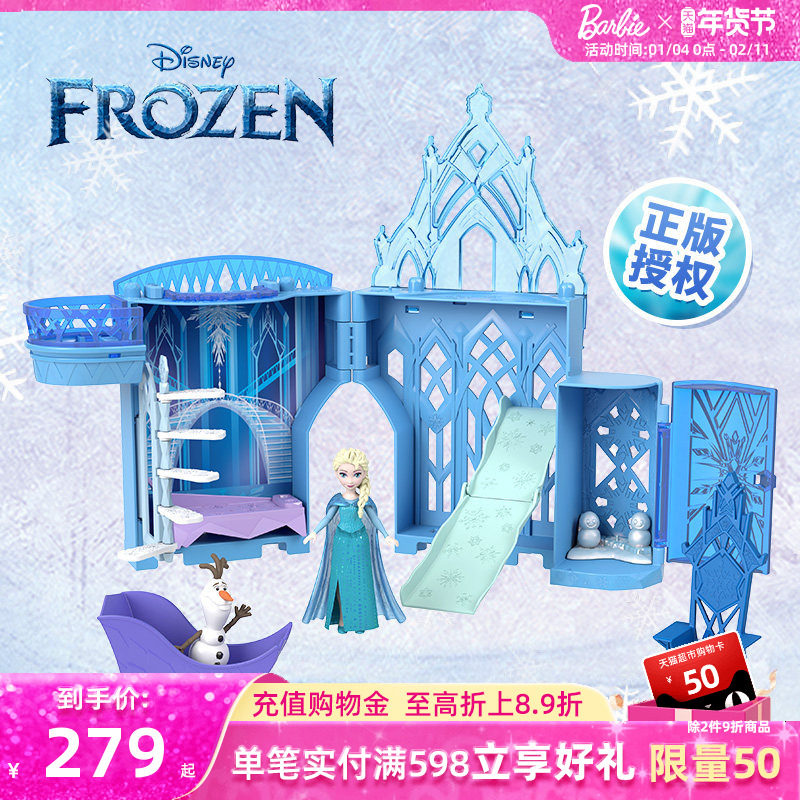芭比娃娃Barbie迪士尼艾莎冰雪城堡套装电影同款雪宝女孩玩具礼物