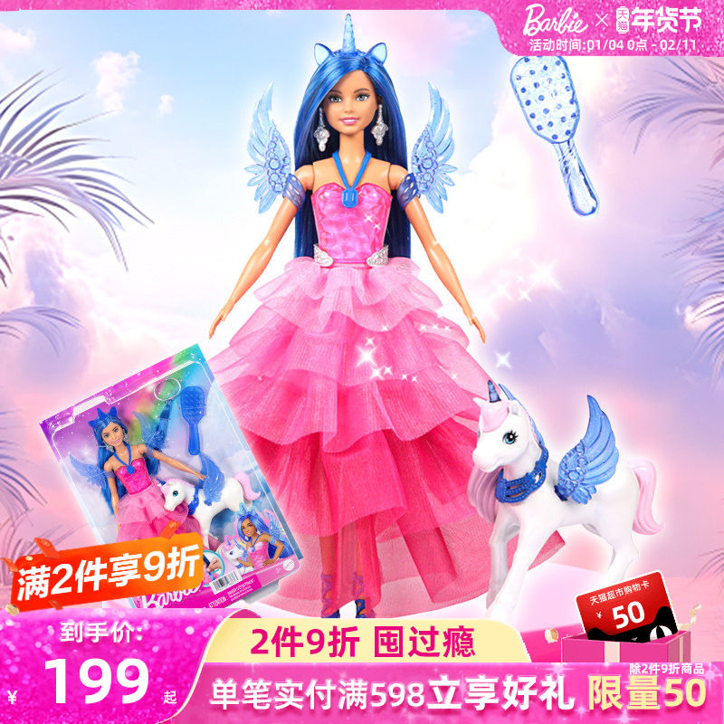芭比娃娃Barbie之梦幻独角兽娃娃套装女孩过家家童话礼物玩具