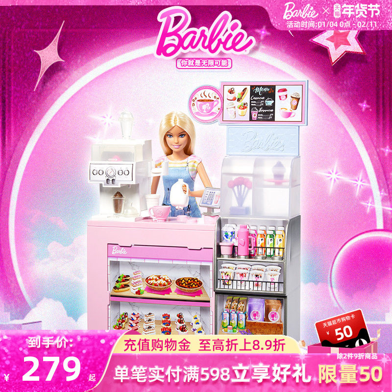 芭比娃娃Barbie咖啡店职业体验套装女孩角色扮演玩具礼盒过家家