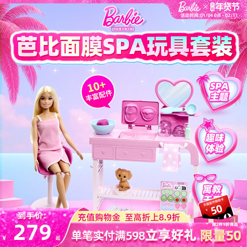 芭比娃娃Barbie面膜SPA益智场景玩具套装女孩过家家生日礼物儿童