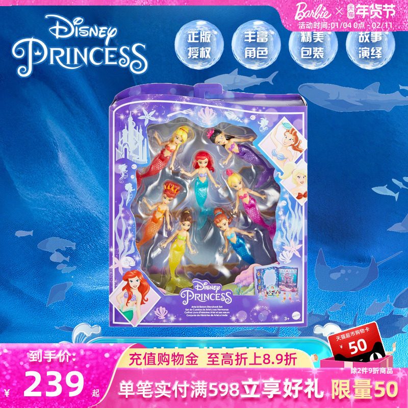 芭比娃娃Barbie迪士尼爱丽儿和姐妹故事书套装女孩玩具过家家礼物