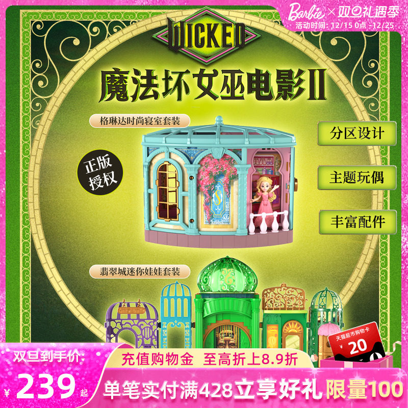 芭比娃娃之魔法坏女巫格琳达时尚寝室套装翡翠城迷你娃娃女孩送礼