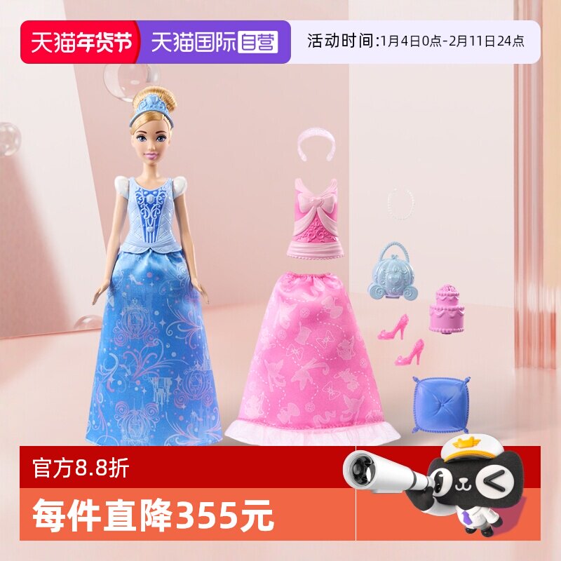 【自营】芭比娃娃迪士尼公主灰姑娘时尚套装可换装女孩过家家玩具
